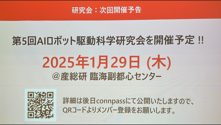 11/14(金) 東大本郷キャンパスにて「AIロボット駆動科学研究会 第4回」を開催しました
