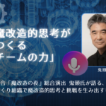 2/26 ホームページ掲載の所信動画をプロデュース、撮影、編集してくださった「魔改造の夜」総合演出鬼頭明氏の講演が開催されます 2026年2月11日 最終更新日時 : 2026年2月11日 miyahara 鬼頭 明 氏 2月26日 14:00-14:45 基調講演魔改造的思考がつくるチームの力~どうしてあのエンジニアは「リミッターが外れて」飛躍できたのか?~ https://www.sbbit.jp/st/eventinfo/87760?ref=2602101600btsp 開催概要 鬼頭明氏 制作 MEEP所信動画 フルバージョン(10分) ショートバージョン(3分)